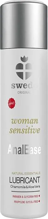 Swede Woman Sensitive AnalEase to lubrykant analny na bazie wody, który łączy komfort z działaniem pielęgnacyjnym. Idealny dla osób, które cenią sobie wygodę i bezpieczeństwo w intymnych chwilach.