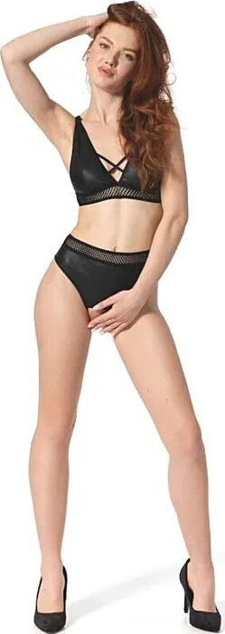 Zmysłowa bielizna, która kusi efektem błyszczącego wykończenia i miękką teksturą. Zestaw KRISTEEN łączy w sobie biustonosz i tanga crotchless, wykonane z wysokiej jakości materiałów (60% poliuretanu, 40% poliestru), dzięki czemu doskonale dopasowuje się do ciała, oferując komfort i elegancję.