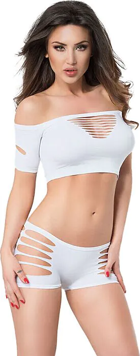 Zestaw składa się z dwóch części, wykonany z elastycznego materiału, co zapewnia wygodę i swobodę ruchów. Otwory dodają mu zmysłowego charakteru.