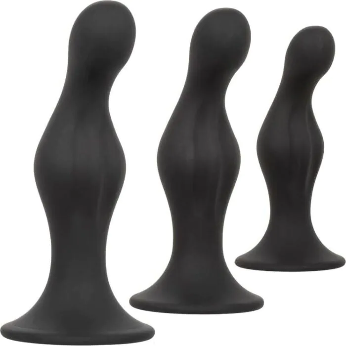 Trzy stopniowane korki analne z silikonu o satynowym wykończeniu oferują komfort i przyjemność na każdym etapie zabawy. Naturalnie zakrzywione kształty trafiają w wszystkie wrażliwe miejsca, a przyssawki gwarantują stabilność podczas użycia.