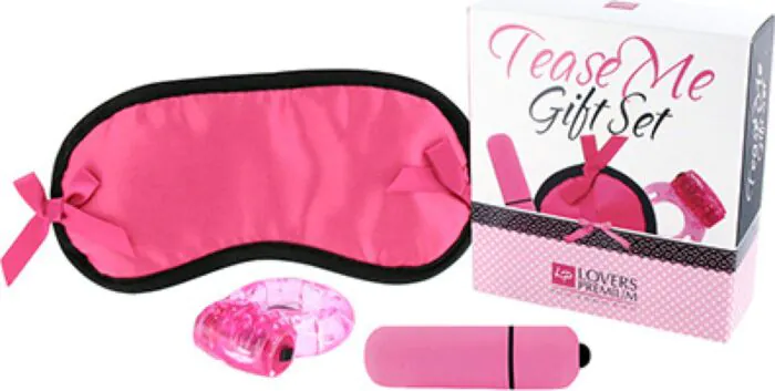 Odkryj swoją zmysłowość z zestawem Tease Me, który zawiera wibrator, maskę z satyny oraz pierścień wibracyjny. Wszystko w zmysłowym różowym kolorze, idealne do pobudzenia Twojej wyobraźni i wprowadzenia odrobiny pikanterii w gry erotyczne.