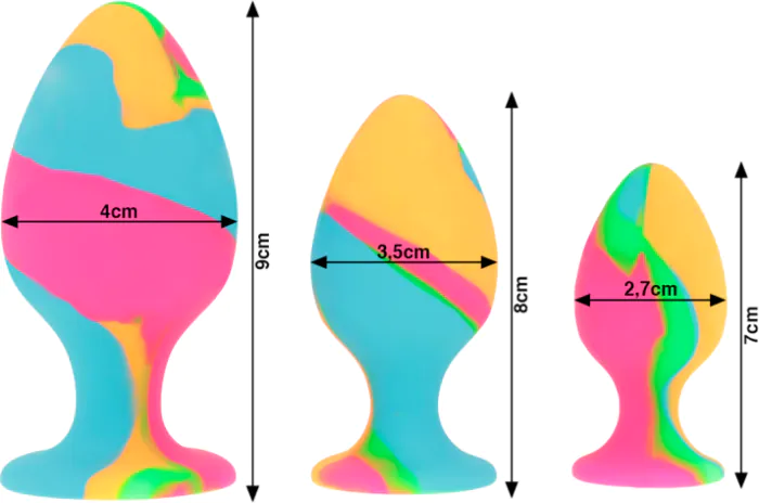 Podaruj sobie intensywne doznania z zestawem plugów analnych INTENSE. Wykonane z wysokiej jakości silikonu, te plugi charakteryzują się wyjątkowym, kolorowym designem tie-dye oraz ergonomiczną formą, która ułatwia korzystanie. Zróżnicowane rozmiary (od 2,7 cm do 4 cm średnicy) sprawiają, że każdy znajdzie coś dla siebie, niezależnie od poziomu doświadczenia.