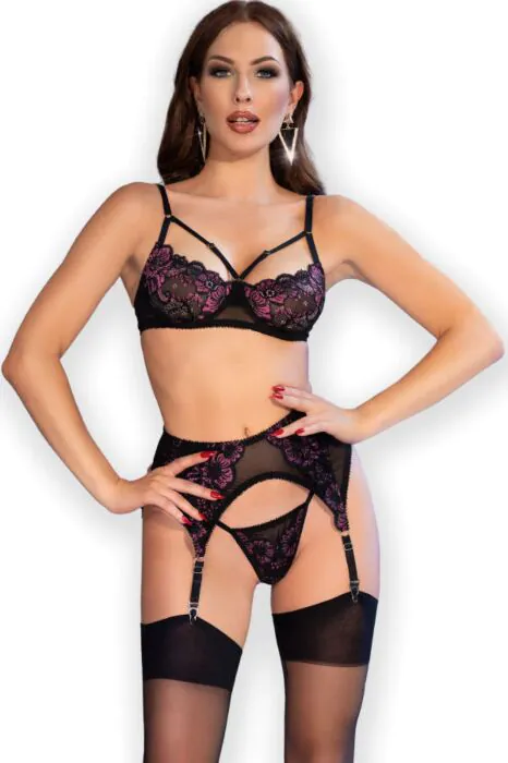 Zestaw zawiera: regulowany stanik, regulowany ligurowy pas, tanga oraz pończochy. Dostępny w rozmiarach S, M, L, XL, co sprawia, że jest odpowiedni dla wielu Pań. To świetny wybór zarówno na codzienny użytek, jak i na specjalne okazje. Zestaw jest stworzony dla kobiet, które cenią sobie estetykę oraz funkcjonalność w bieliźnie.